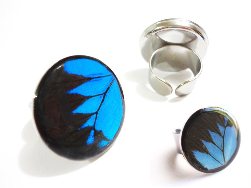 Cada anillo es único, el que recibas será elaborado con el mismo diseño pero tendrá pequeñas variaciones propias de cada mariposa utilizada.