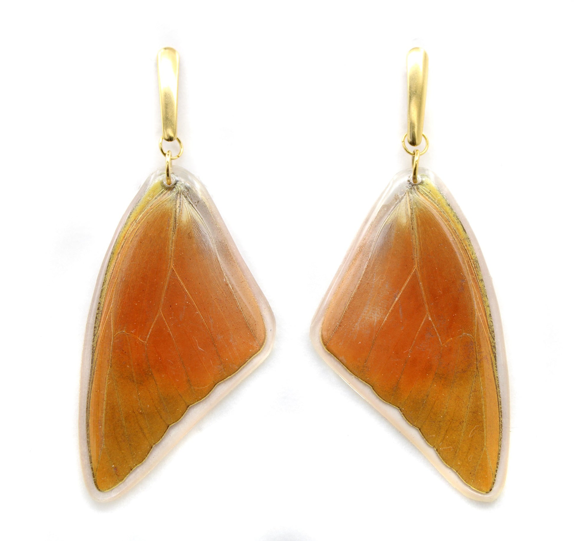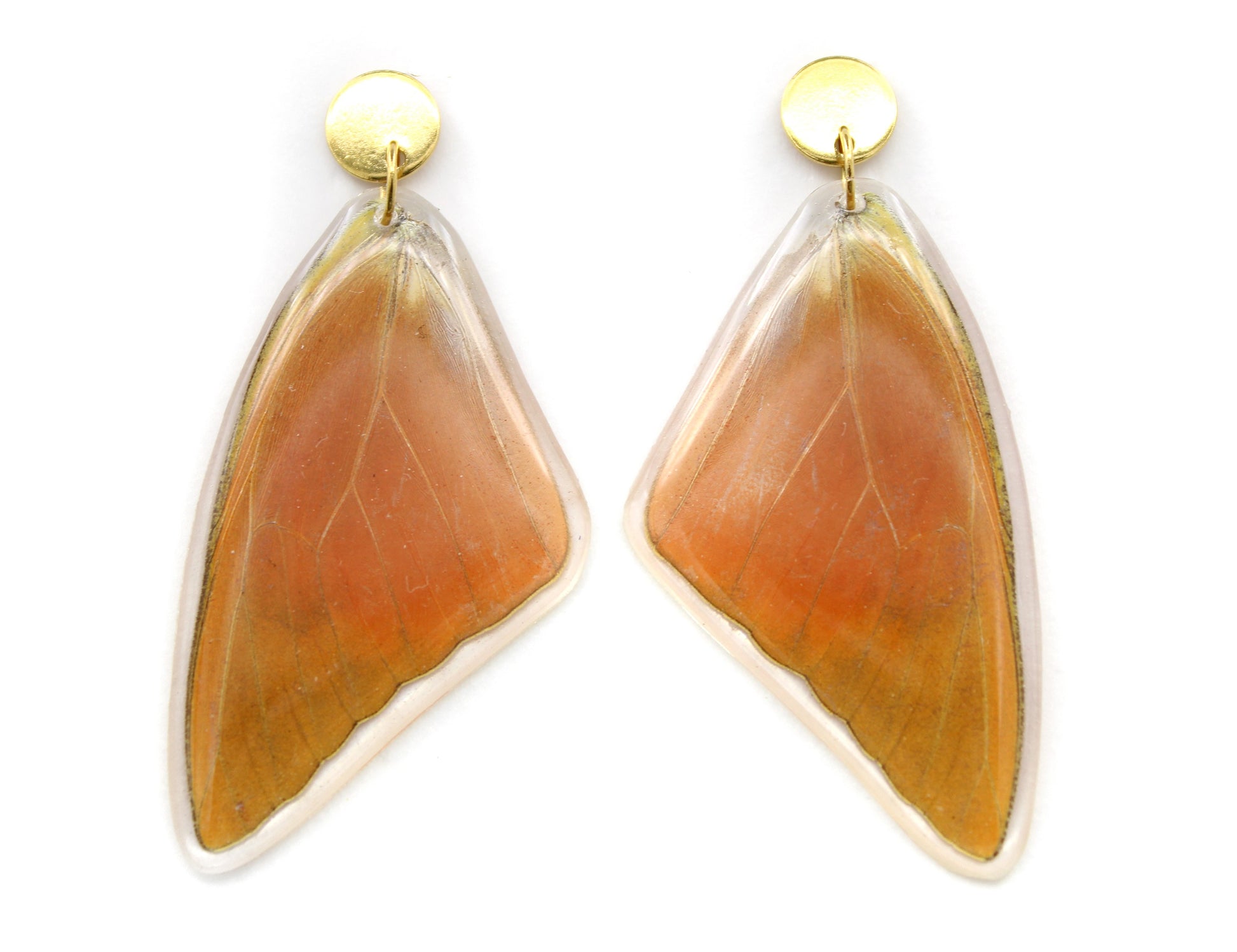 Aretes elaborados con alas de la mariposa Appias nero y herraje hipoalergénico de acero.