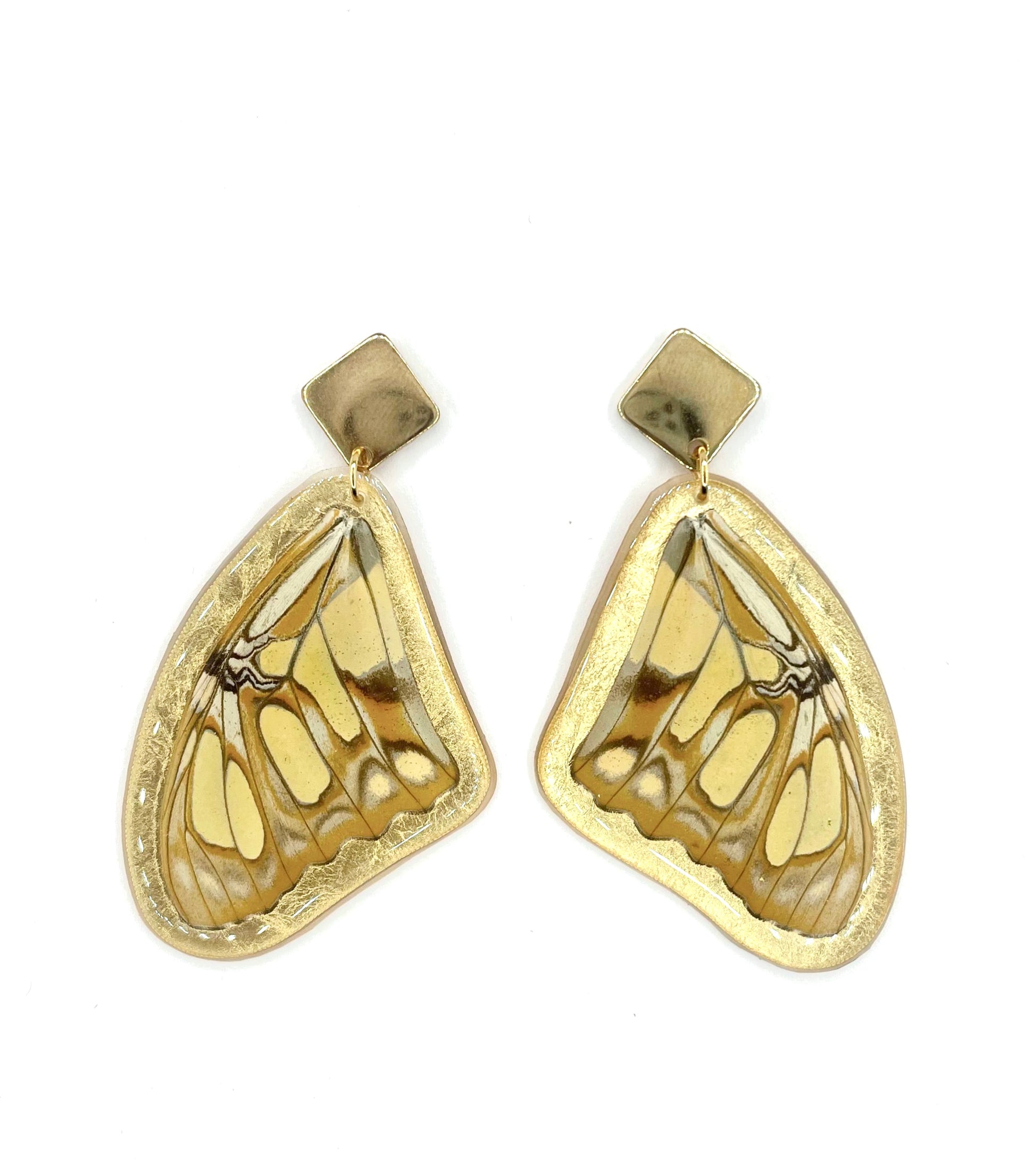 Aretes elaborados con alas superiores de la mariposa Victorina stelenes y topo hipoalergénico de acero.