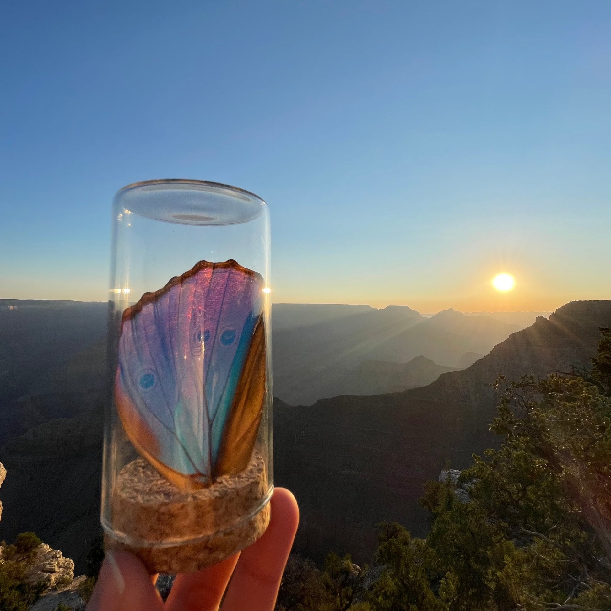 Evitar el contacto directo: Evita tocar directamente el ala de la mariposa. Siempre manipúlala sujetando el frasco por el vidrio para evitar dañarla o desplazarla de su posición.