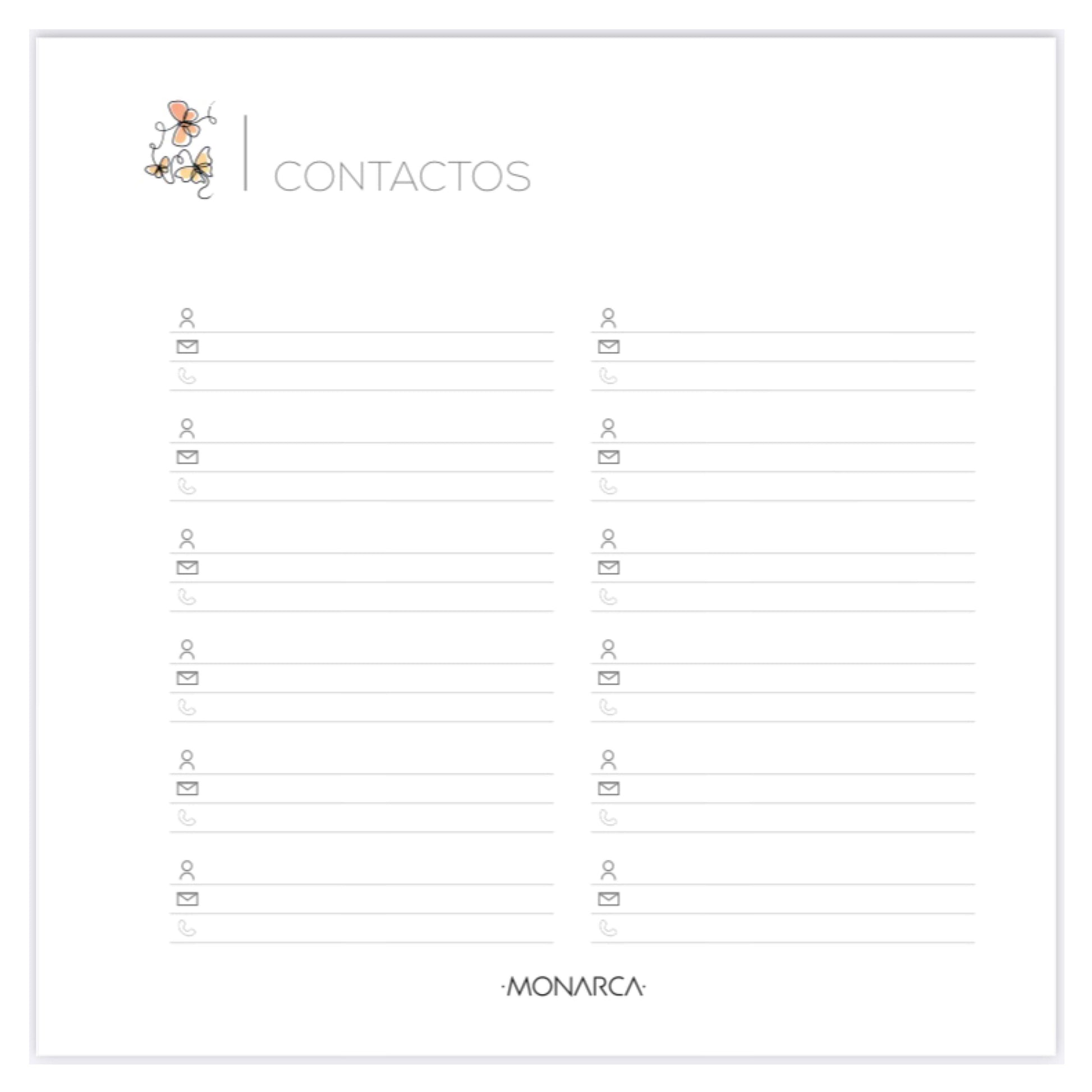 Contiene Pagina con Calendario 2025, Página para fechas especiales, Planeador anual, Planeador mensual, Planeador semanal para apuntar tus eventos, reuniones y llamadas importantes, Página para apuntar tus gastos y llevar el control de tus finanzas, Páginas para contactos, Páginas para notas.